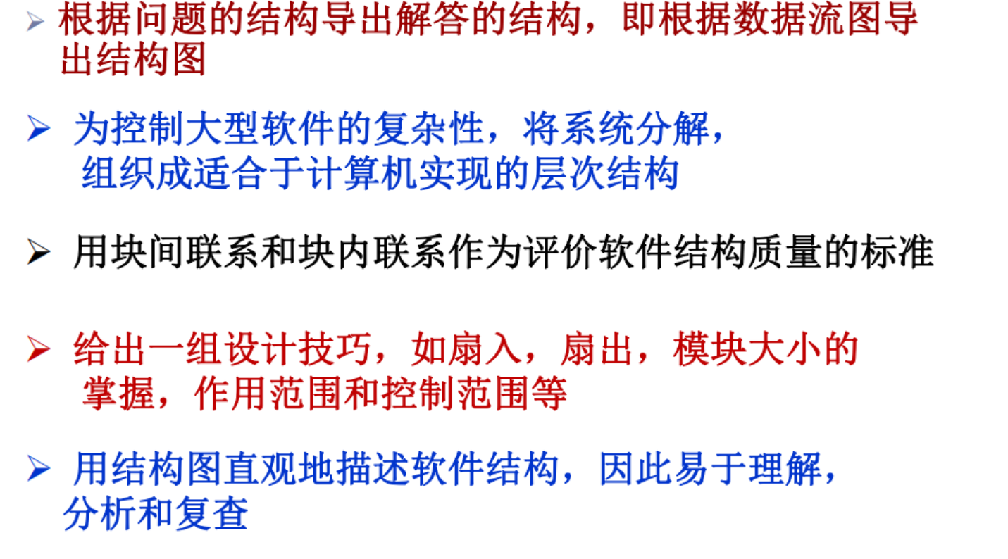 - 体系结构设计(数据流图):软件的主要结构性元素